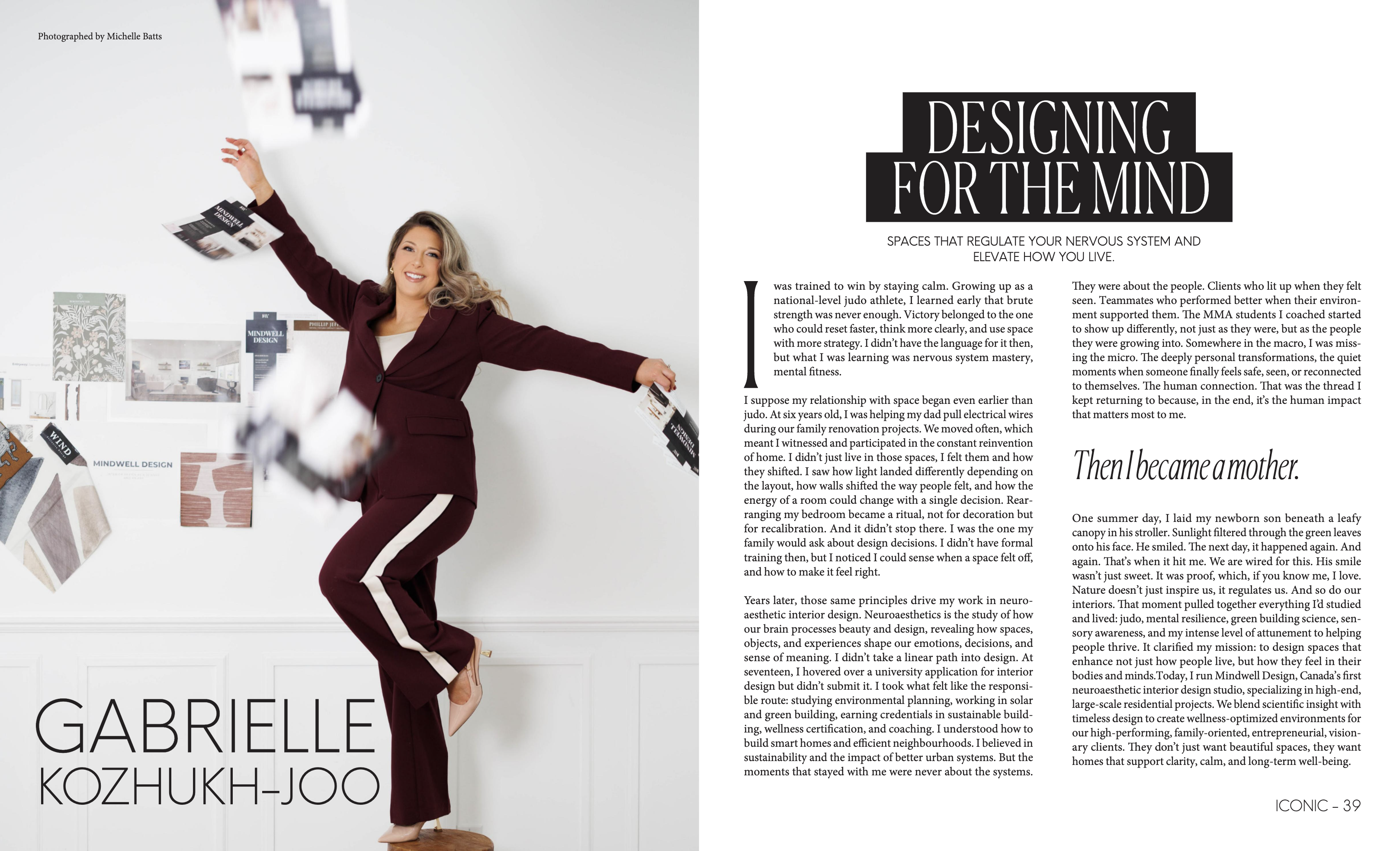This feature, Designing for the Mind, is a deeply personal story about where our philosophy comes from, how childhood wiring, judo training, motherhood, and design all intersect to shape the way we build spaces that help people feel clear, calm, and at home in themselves.